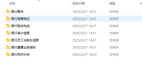 银行数据大全数据主要包括: