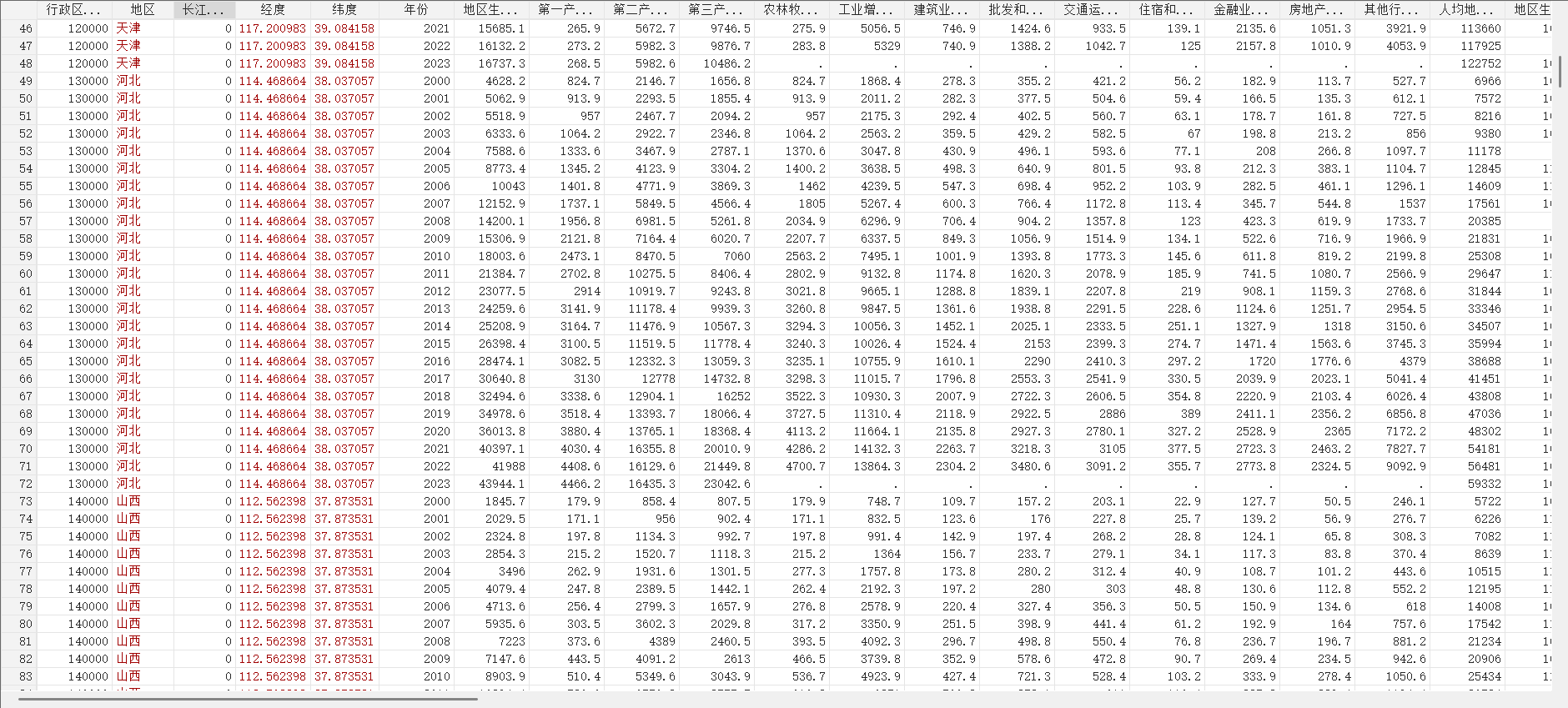 省级面板数据(2000-2023):国名经济核算GDP产业增加值工业增加值居民消费政府消费等