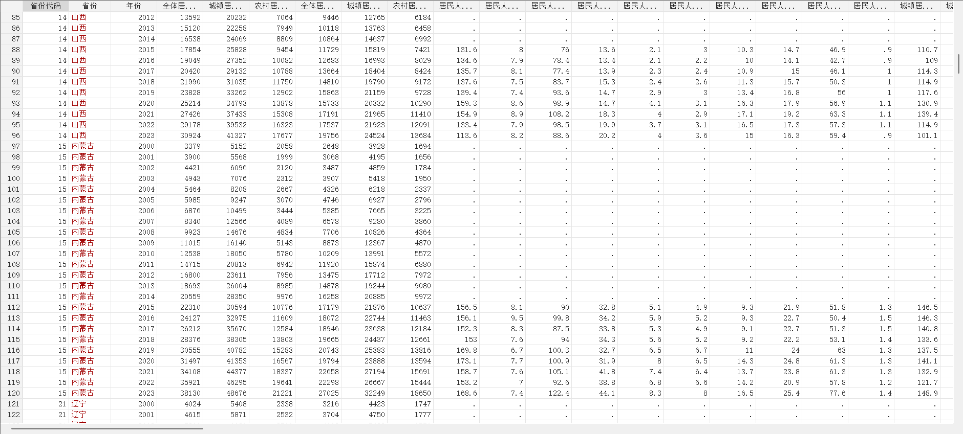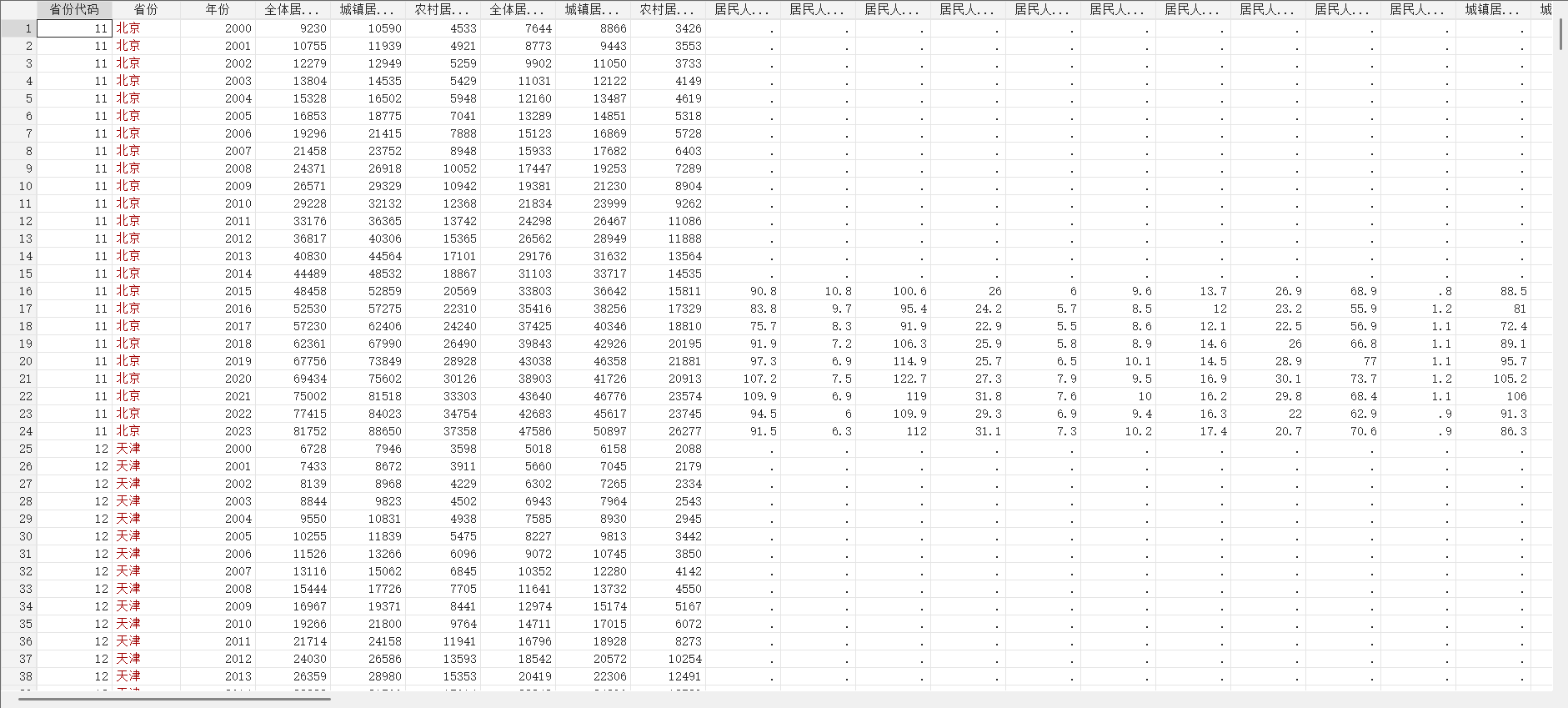 省级面板数据(2000-2023):城镇、农村居民可支配收入、人均消费支出、粮油蛋奶消费支出、空调洗衣机冰箱汽车拥有量