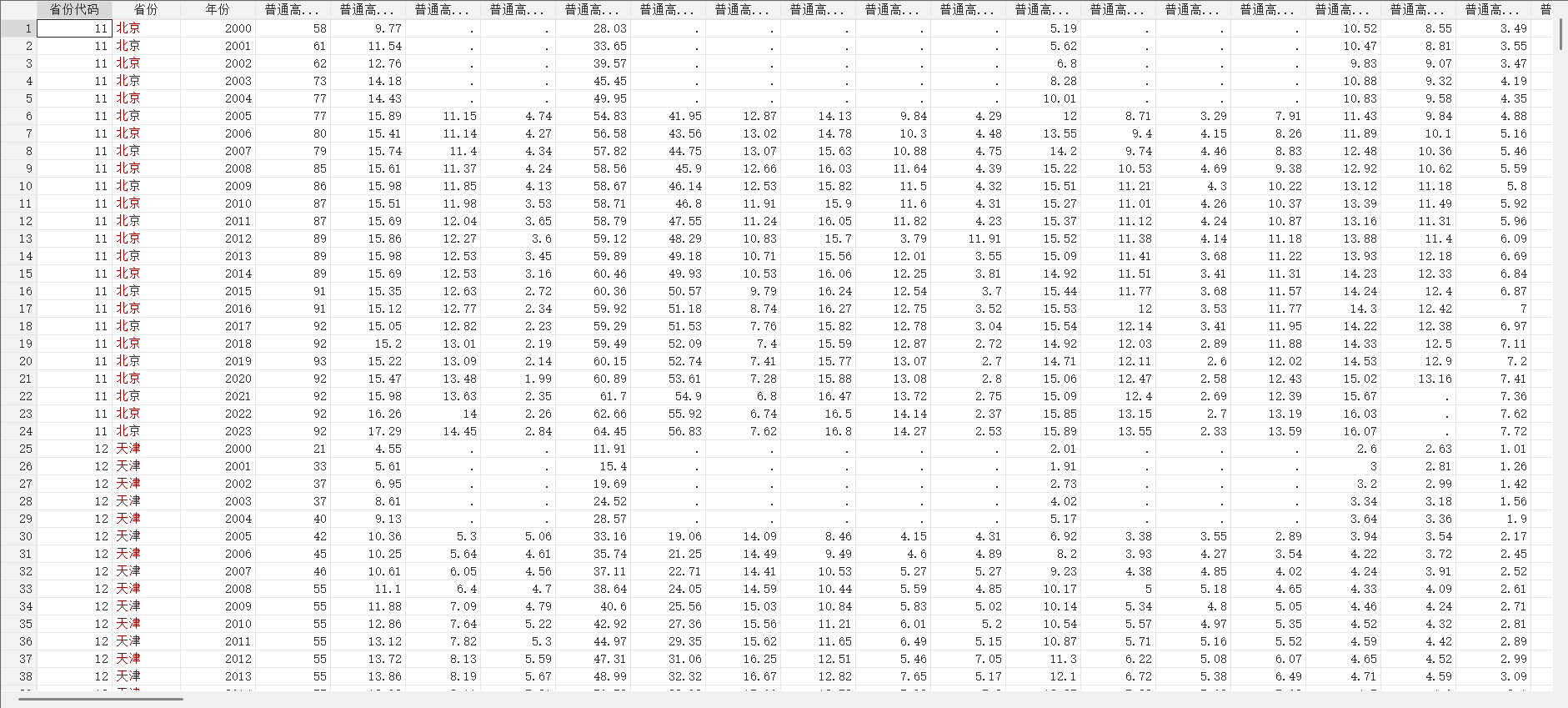 省级面板数据(2000-2023):教育科技:初中高中大专本科硕士博士在校、毕业人数、教育经费、研发投入、专利申请授权量、技术市场成交额