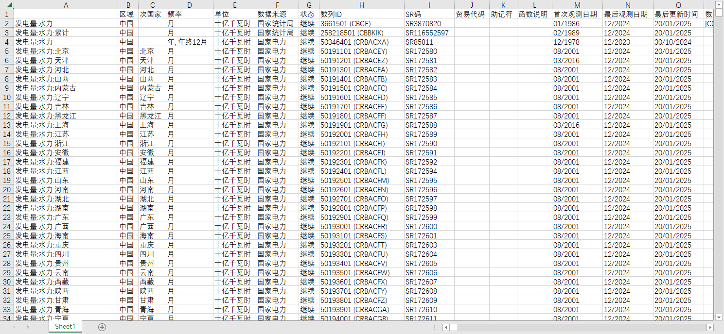全国31个省份能源生产量电力发电量火力水电2001-2024月度累计同比1991-2023年度日度