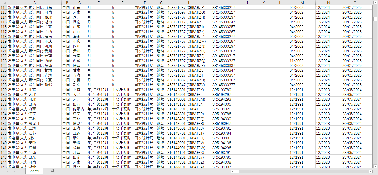 中国全国能源生产量电力发电量水电2001-2024月度数据细分31个省份地区累计同比1991-2023年度