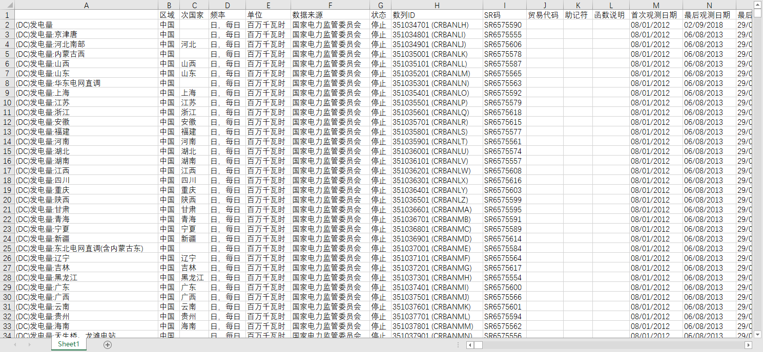 中国全国能源生产量电力发电量日度2012-20130608日度数据细分31个省份地区