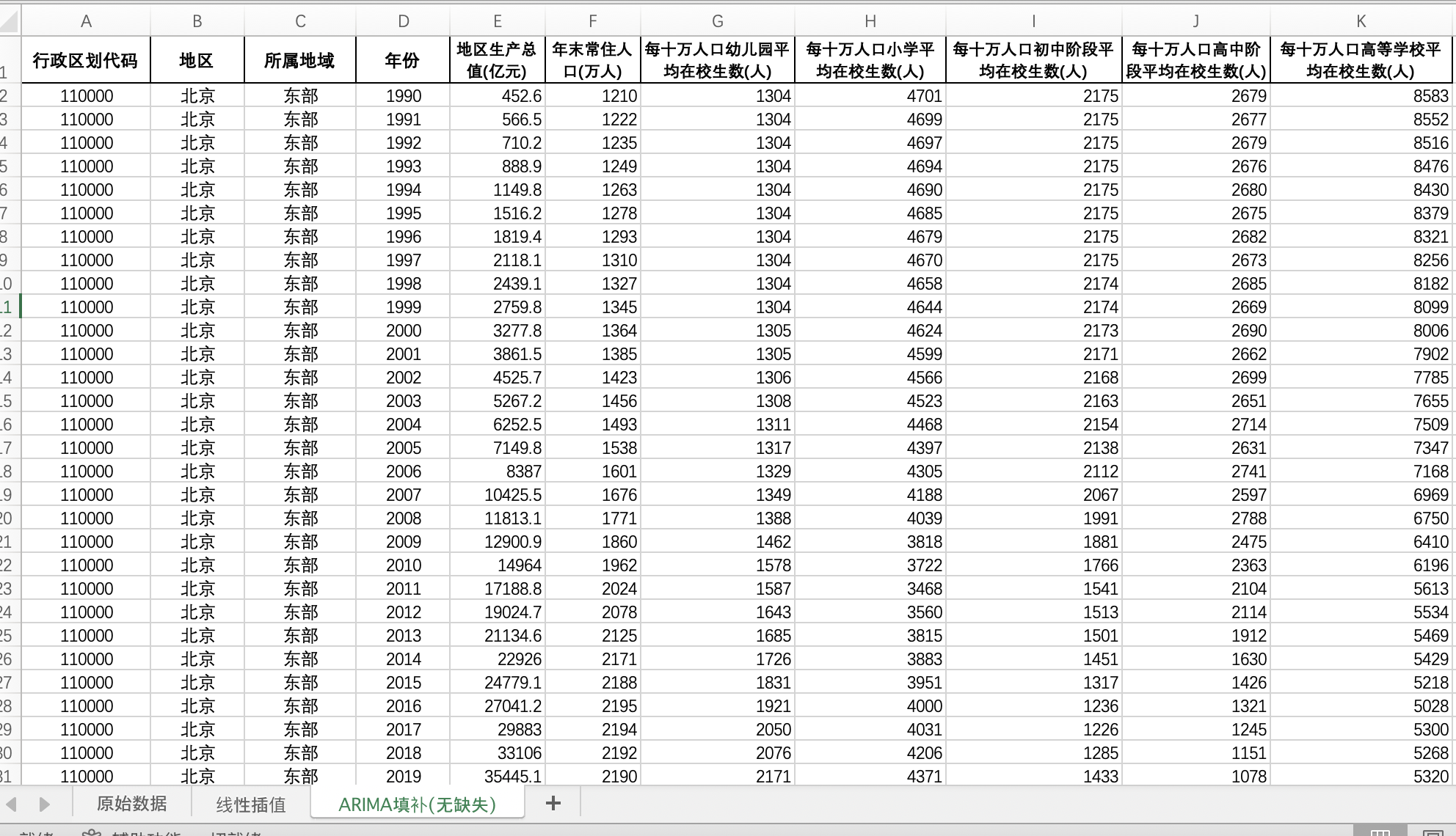数据整理:Excel面板数据含原始数据(由于多年度指标不同存在缺失值)、线性插值、回归填补(无缺失)三个版本,提供您参考使用。其中,回归填补无缺失值,以保证面板数据的平衡性。