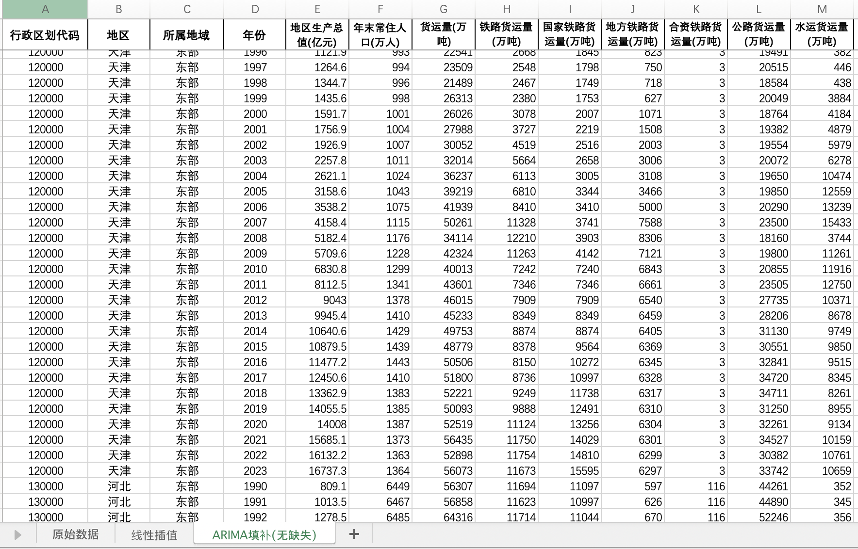 3. ARIMA模型:结合时间序列趋势,采用ARIMA模型对剩余缺失数据进行预测补全。