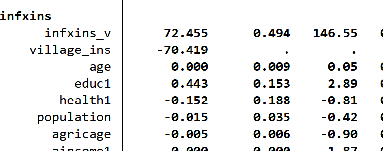 2. **多重共线性**:交互项常常会带来较高的多重共线性问题,尤其是当交互项中的两个原始变量之间存在相关性时。这会导致回归系数不稳定且数值较大。你可以检查一下`ins`, `inf`, 和`iv`之间的相关性来确认这一点。