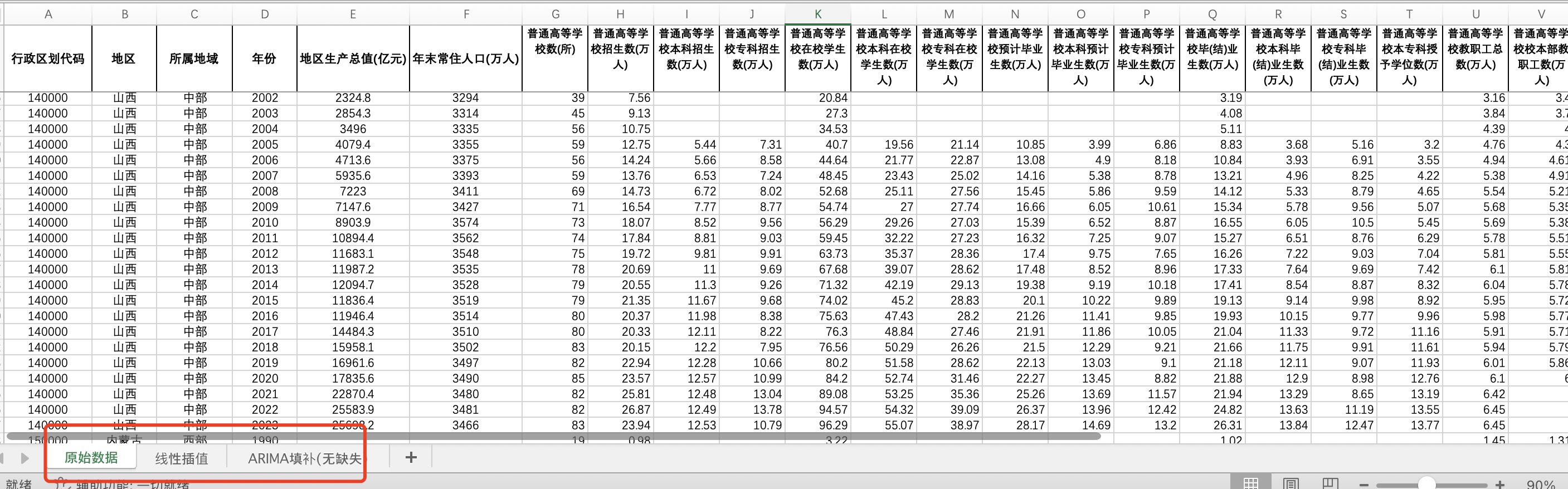 数据整理:Excel面板数据含原始数据(由于多年度指标不同存在缺失值)、线性插值、回归填补(无缺失)三个版本,提供您参考使用。其中,回归填补无缺失值,以保证面板数据的平衡性。