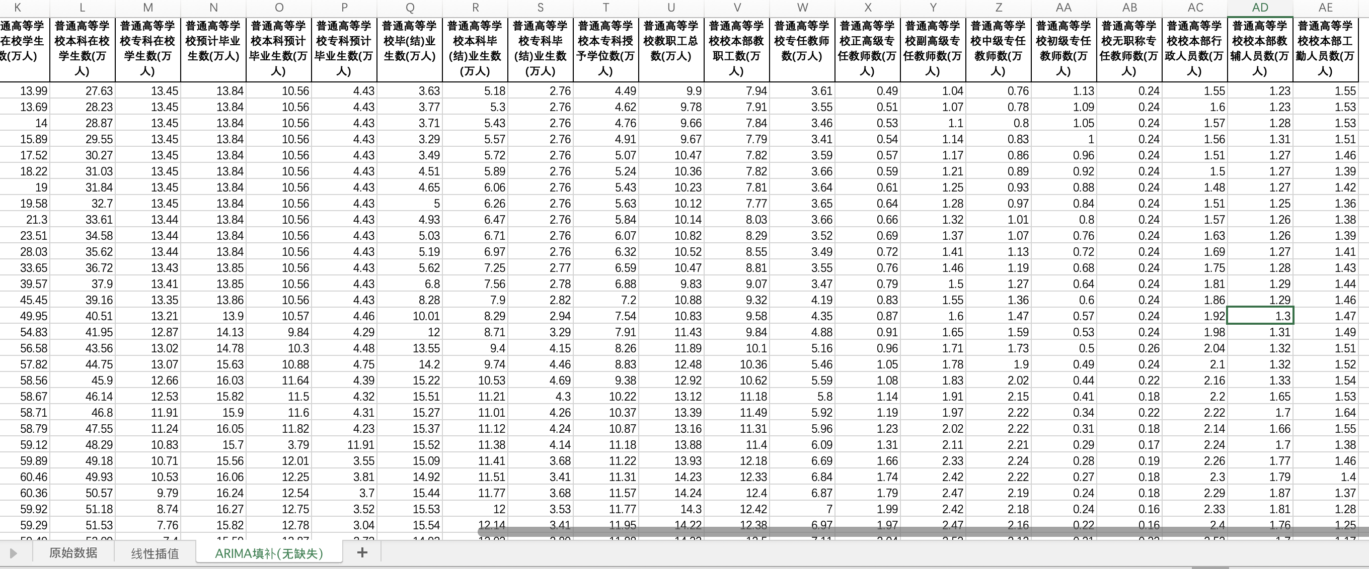 3. ARIMA模型:结合时间序列趋势,采用ARIMA模型对剩余缺失数据进行预测补全。
