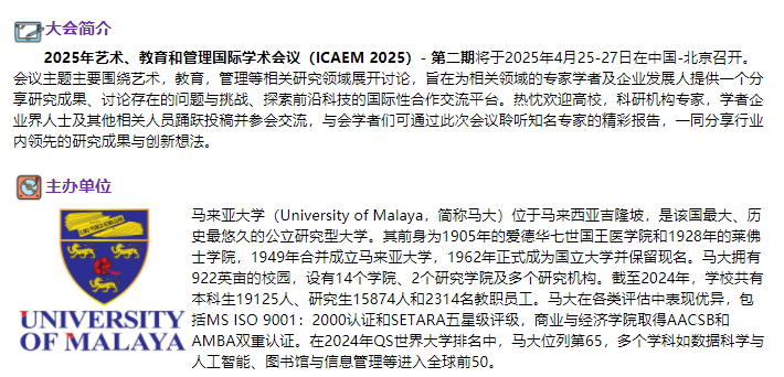 2025年艺术、教育和管理国际学术会议(ICAEM 2025)- 第二期