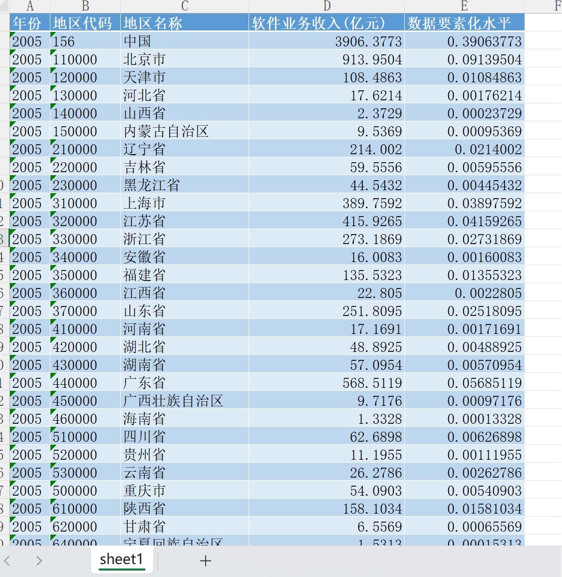 数据名称:各省份数据资产水平05-22年数据要素化水平