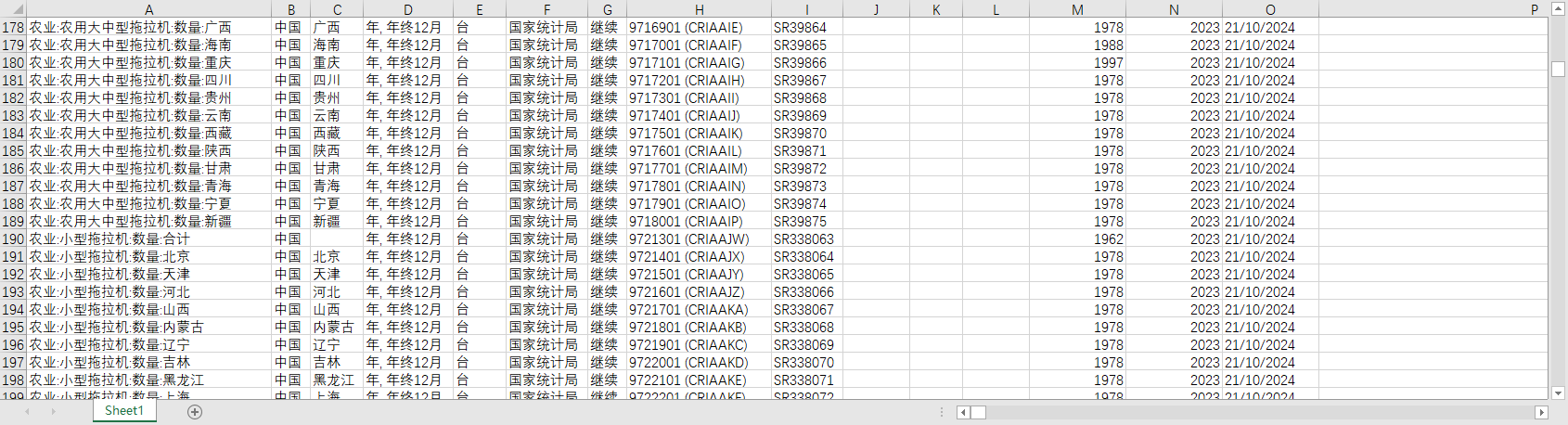 全国31个省份农业机械1978-2023动力数量大中小型拖拉机配套农具渔用机动船农用排灌柴油机