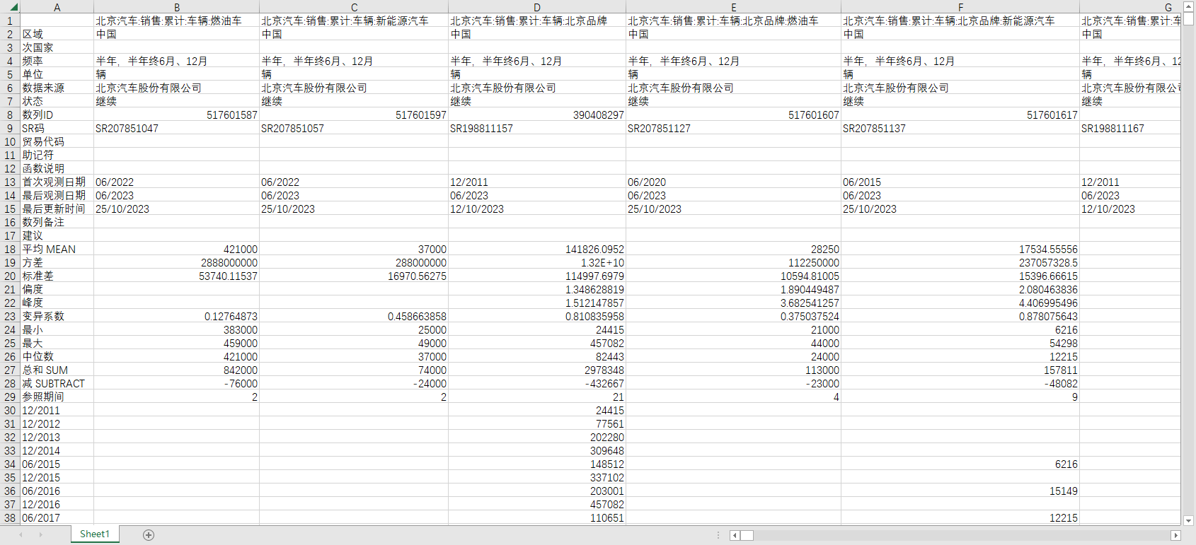 北京汽车:销售:累计:车辆:燃油车 北京汽车:销售:累计:车辆:新能源汽车 北京汽车:销售:累计:车辆:北京品牌 北京汽车:销售:累计:车辆:北京品牌:燃油车 北京汽车:销售:累计:车辆:北京品牌:新能源汽车 北京汽车:销售:累计:车辆:北京奔驰 北京汽车:销售:累计:车辆:北京现代 北京汽车:销售:累计:车辆:福建奔驰