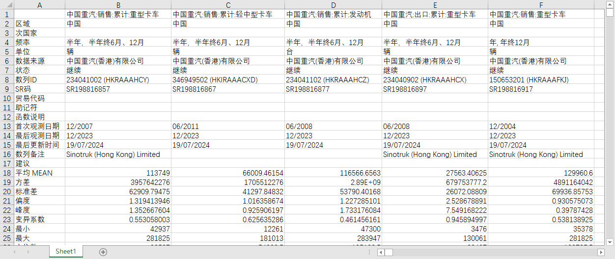 中国重汽:销售:累计:重型卡车 中国重汽:销售:累计:轻中型卡车 中国重汽:销售:累计:发动机 中国重汽:出口:累计:重型卡车 中国重汽:销售:重型卡车