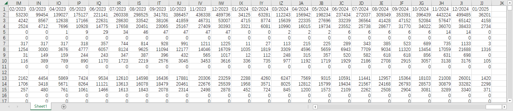 分当月数据、1-累计到当月的数据