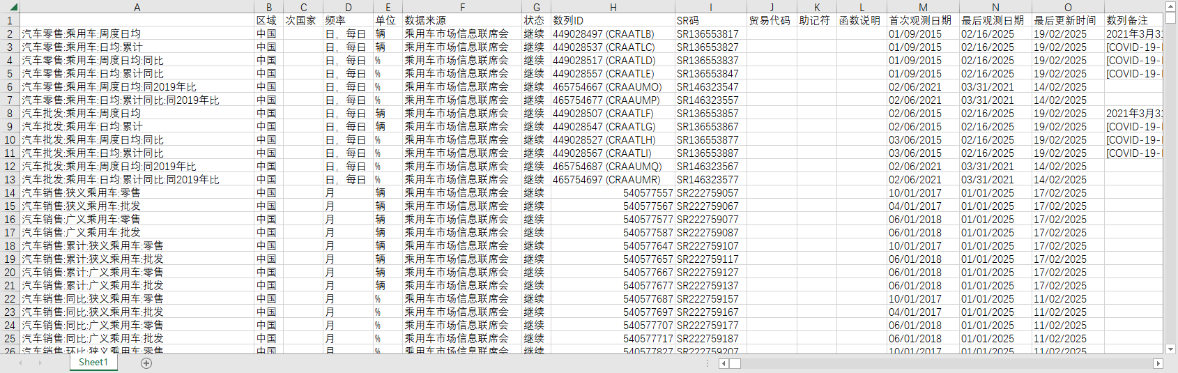中国全国汽车销售量销量乘用车批发零售2015-202501周度数据轿车MPVSUV