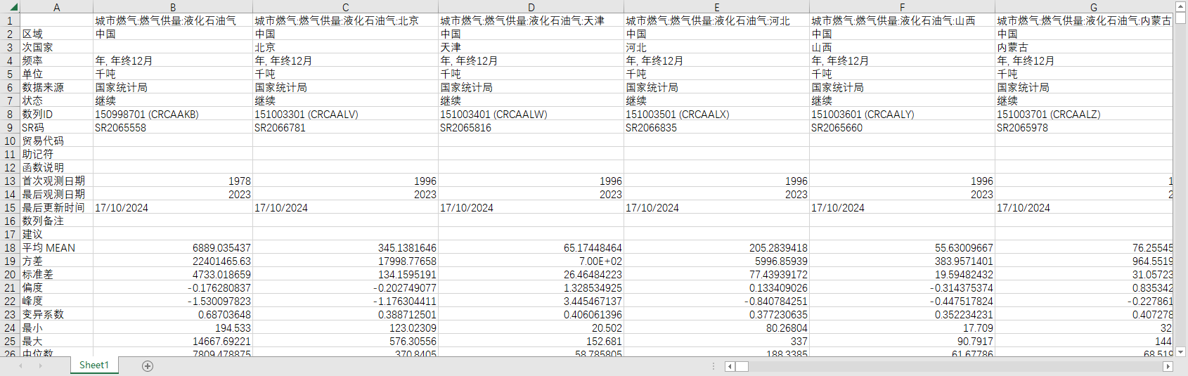中国全国燃气供应量供量液化石油气分31个省份1996-2023城市燃气
