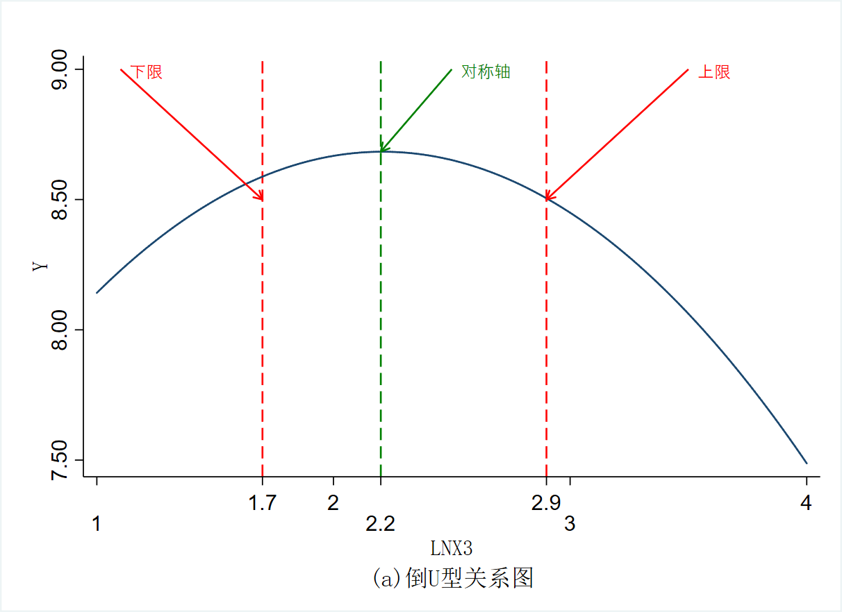 stata画倒U图并标记拐点(x=-b/2a)以及极值点