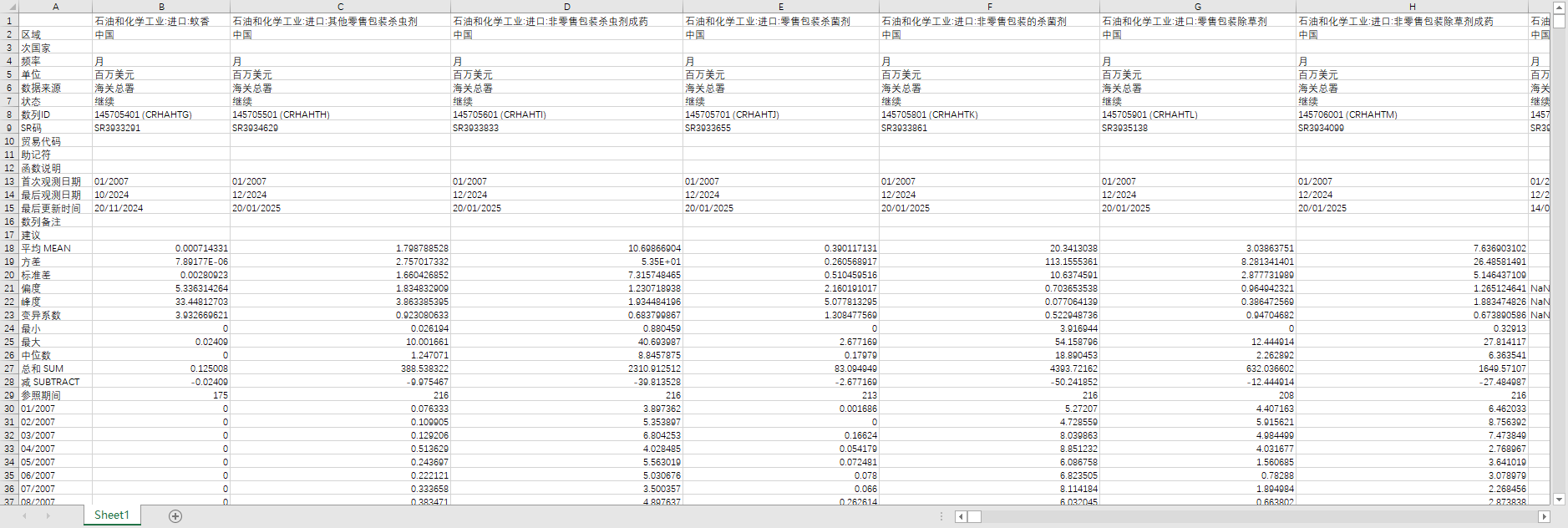 石油和化学工业:进口:蚊香 石油和化学工业:进口:其他零售包装杀虫剂 石油和化学工业:进口:非零售包装杀虫剂成药 石油和化学工业:进口:零售包装杀菌剂 石油和化学工业:进口:非零售包装的杀菌剂 石油和化学工业:进口:零售包装除草剂 石油和化学工业:进口:非零售包装除草剂成药 石油和化学工业:进口:含PIC清单化学品的零售包装农药 石油和化学工业:进口:含PIC清单化学品的非零售包装农药 石油和化学工业:进口:零售包装抗萌剂及植物生长调节剂 石油和化学工业:进口:非零售包装抗萌剂及植物生长调节剂 石油和化学工业:进口:消毒剂 石油和化学工业:进口:零售包装的杀鼠剂及其他农药 石油和化学工业:进口:非零售包装的杀鼠剂及其他农药 石油和化学工业:出口:蚊香 石油和化学工业:出口:其他零售包装杀虫剂 石油和化学工业:出口:非零售包装杀虫剂成药 石油和化学工业:出口:零售包装杀菌剂 石油和化学工业:出口:非零售包装的杀菌剂 石油和化学工业:出口:零售包装除草剂 石油和化学工业:出口:非零售包装除草剂成药 石油和化学工业:出口:含PIC清单化学品的零售包装农药 石油和化学工业:出口:含PIC清单化学品的非零售包装农药 石油和化学工业:出口:零售包装抗萌剂及植物生长调节剂 石油和化学工业:出口:非零售包装抗萌剂及植物生长调节剂 石油和化学工业:出口:消毒剂 石油和化学工业:出口:零售包装的杀鼠剂及其他农药 石油和化学工业:出口:非零售包装的杀鼠剂及其他农药 石油和化学工业:进口:蚊香 石油和化学工业:进口:其他零售包装杀虫剂 石油和化学工业:进口:非零售包装杀虫剂成药 石油和化学工业:进口:零售包装杀菌剂 石油和化学工业:进口:非零售包装的杀菌剂 石油和化学工业:进口:零售包装除草剂 石油和化学工业:进口:非零售包装除草剂成药 石油和化学工业:进口:含PIC清单化学品的零售包装农药 石油和化学工业:进口:含PIC清单化学品的非零售包装农药 石油和化学工业:进口:零售包装抗萌剂及植物生长调节剂 石油和化学工业:进口:非零售包装抗萌剂及植物生长调节剂 石油和化学工业:进口:消毒剂 石油和化学工业:进口:零售包装的杀鼠剂及其他农药 石油和化学工业:进口:非零售包装的杀鼠剂及其他农药 石油和化学工业:出口:蚊香 石油和化学工业:出口:其他零售包装杀虫剂 石油和化学工业:出口:非零售包装杀虫剂成药 石油和化学工业:出口:零售包装杀菌剂 石油和化学工业:出口:非零售包装的杀菌剂 石油和化学工业:出口:零售包装除草剂 石油和化学工业:出口:非零售包装除草剂成药 石油和化学工业:出口:含PIC清单化学品的零售包装农药 石油和化学工业:出口:含PIC清单化学品的非零售包装农药 石油和化学工业:出口:零售包装抗萌剂及植物生长调节剂 石油和化学工业:出口:非零售包装抗萌剂及植物生长调节剂 石油和化学工业:出口:消毒剂 石油和化学工业:出口:零售包装的杀鼠剂及其他农药 石油和化学工业:出口:非零售包装的杀鼠剂及其他农药