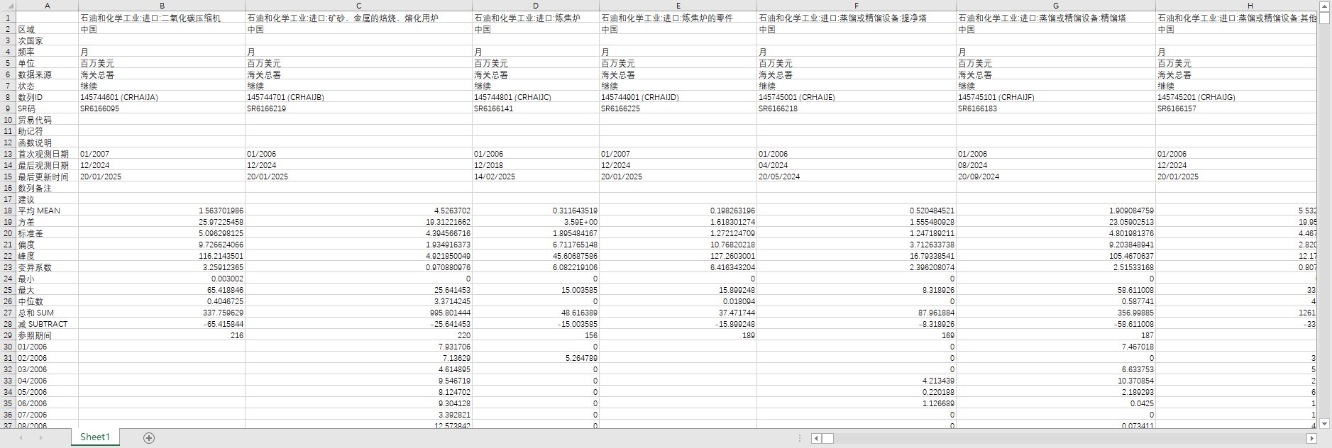 石油和化学工业:进口:二氧化碳压缩机 石油和化学工业:进口:矿砂、金属的焙烧、熔化用炉 石油和化学工业:进口:炼焦炉 石油和化学工业:进口:炼焦炉的零件 石油和化学工业:进口:蒸馏或精馏设备:提净塔 石油和化学工业:进口:蒸馏或精馏设备:精馏塔 石油和化学工业:进口:蒸馏或精馏设备:其他 石油和化学工业:进口:热交换装置 石油和化学工业:进口:加氢反应器 石油和化学工业:进口:蒸发式空气冷却器 石油和化学工业:进口:混合、搅拌、轧碎、研磨、筛选、均化或乳化机器 石油和化学工业:进口:注射机:注塑机 石油和化学工业:进口:注射机:其他 石油和化学工业:进口:挤出机:塑料造粒机 石油和化学工业:进口:挤出机:其他 石油和化学工业:进口:挤出吹塑机 石油和化学工业:进口:注射吹塑机 石油和化学工业:进口:其他吹塑机 石油和化学工业:进口:塑料中空成型机 石油和化学工业:进口:塑料压延成型机 石油和化学工业:进口:真空模塑及其他热成型机器 石油和化学工业:进口:用于充气轮胎模塑或翻新的机器(包括内胎模塑或用其他方法成型的机器) 石油和化学工业:进口:三维打印机(3D打印机) 石油和化学工业:进口:模塑机、成型机 石油和化学工业:进口:未列名的橡胶或塑料加工机器 石油和化学工业:进口:橡胶、塑料等加工机器的零件 石油和化学工业:进口:硫化轮胎用囊式型模 石油和化学工业:进口:塑料或橡胶用注模或压模 石油和化学工业:进口:塑料或橡胶用其他型模 石油和化学工业:出口:二氧化碳压缩机 石油和化学工业:出口:矿砂、金属的焙烧、熔化用炉 石油和化学工业:出口:炼焦炉 石油和化学工业:出口:炼焦炉的零件 石油和化学工业:出口:蒸馏或精馏设备:提净塔 石油和化学工业:出口:蒸馏或精馏设备:精馏塔 石油和化学工业:出口:蒸馏或精馏设备:其他 石油和化学工业:出口:热交换装置 石油和化学工业:出口:加氢反应器 石油和化学工业:出口:蒸发式空气冷却器 石油和化学工业:出口:混合、搅拌、轧碎、研磨、筛选、均化或乳化机器 石油和化学工业:出口:注射机:注塑机 石油和化学工业:出口:注射机:其他 石油和化学工业:出口:挤出机:塑料造粒机 石油和化学工业:出口:挤出机:其他 石油和化学工业:出口:挤出吹塑机 石油和化学工业:出口:注射吹塑机 石油和化学工业:出口:其他吹塑机 石油和化学工业:出口:塑料中空成型机 石油和化学工业:出口:塑料压延成型机 石油和化学工业:出口:真空模塑及其他热成型机器 石油和化学工业:出口:用于充气轮胎模塑或翻新的机器(包括内胎模塑或用其他方法成型的机器) 石油和化学工业:出口:三维打印机(3D打印机) 石油和化学工业:出口:模塑机、成型机 石油和化学工业:出口:未列名的橡胶或塑料加工机器 石油和化学工业:出口:橡胶、塑料等加工机器的零件 石油和化学工业:出口:硫化轮胎用囊式型模 石油和化学工业:出口:塑料或橡胶用注模或压模 石油和化学工业:出口:塑料或橡胶用其他型模 石油和化学工业:进口:二氧化碳压缩机 石油和化学工业:进口:矿砂、金属的焙烧、熔化用炉 石油和化学工业:进口:炼焦炉 石油和化学工业:进口:炼焦炉的零件 石油和化学工业:进口:蒸馏或精馏设备:提净塔 石油和化学工业:进口:蒸馏或精馏设备:精馏塔 石油和化学工业:进口:蒸馏或精馏设备:其他 石油和化学工业:进口:热交换装置 石油和化学工业:进口:加氢反应器 石油和化学工业:进口:蒸发式空气冷却器 石油和化学工业:进口:混合、搅拌、轧碎、研磨、筛选、均化或乳化机器 石油和化学工业:进口:注射机:注塑机 石油和化学工业:进口:注射机:其他 石油和化学工业:进口:挤出机:塑料造粒机 石油和化学工业:进口:挤出机:其他 石油和化学工业:进口:挤出吹塑机 石油和化学工业:进口:注射吹塑机 石油和化学工业:进口:其他吹塑机 石油和化学工业:进口:塑料中空成型机 石油和化学工业:进口:塑料压延成型机 石油和化学工业:进口:真空模塑及其他热成型机器 石油和化学工业:进口:用于充气轮胎模塑或翻新的机器(包括内胎模塑或用其他方法成型的机器) 石油和化学工业:进口:三维打印机(3D打印机) 石油和化学工业:进口:模塑机、成型机 石油和化学工业:进口:未列名的橡胶或塑料加工机器 石油和化学工业:进口:橡胶、塑料等加工机器的零件 石油和化学工业:进口:硫化轮胎用囊式型模 石油和化学工业:进口:塑料或橡胶用注模或压模 石油和化学工业:进口:塑料或橡胶用其他型模 石油和化学工业:出口:二氧化碳压缩机 石油和化学工业:出口:矿砂、金属的焙烧、熔化用炉 石油和化学工业:出口:炼焦炉 石油和化学工业:出口:炼焦炉的零件 石油和化学工业:出口:蒸馏或精馏设备:提净塔 石油和化学工业:出口:蒸馏或精馏设备:精馏塔 石油和化学工业:出口:蒸馏或精馏设备:其他 石油和化学工业:出口:热交换装置 石油和化学工业:出口:加氢反应器 石油和化学工业:出口:蒸发式空气冷却器 石油和化学工业:出口:混合、搅拌、轧碎、研磨、筛选、均化或乳化机器 石油和化学工业:出口:注射机:注塑机 石油和化学工业:出口:注射机:其他 石油和化学工业:出口:挤出机:塑料造粒机 石油和化学工业:出口:挤出机:其他 石油和化学工业:出口:挤出吹塑机 石油和化学工业:出口:注射吹塑机 石油和化学工业:出口:其他吹塑机 石油