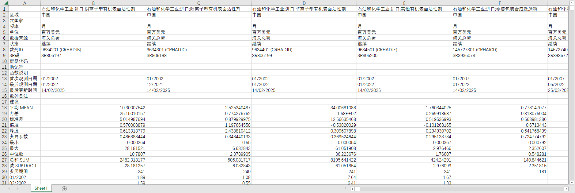 数据范围:全国各个行业市场统计,进出口统计