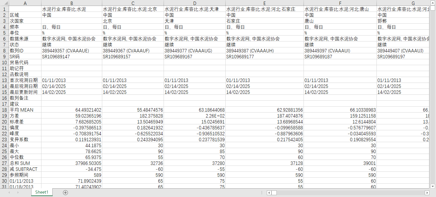 中国全国水泥库存库容比2013-202502周度数据分地级市城市水泥出货率2017-202502周度数据