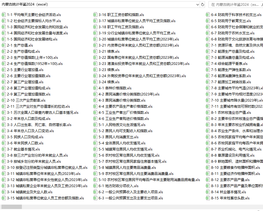 内蒙古统计年鉴2024(excel格式)【免费下载】