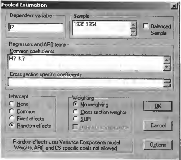 第一个是关于固定效应和随机效应的选择问题,高铁梅的版本里关于软件的操作有4.0和5.0两个版本,如上图,在“intercept”和“estimation method”选择上很困惑啊,后者新增的两个关于界面和时期的复选框怎么理解 啊。比如我的模型是变截距固定效应模型,我应该怎么选择呢?