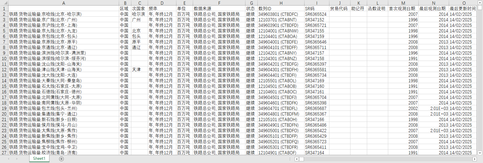 铁路:货物运输量:京哈线(北京-哈尔滨)