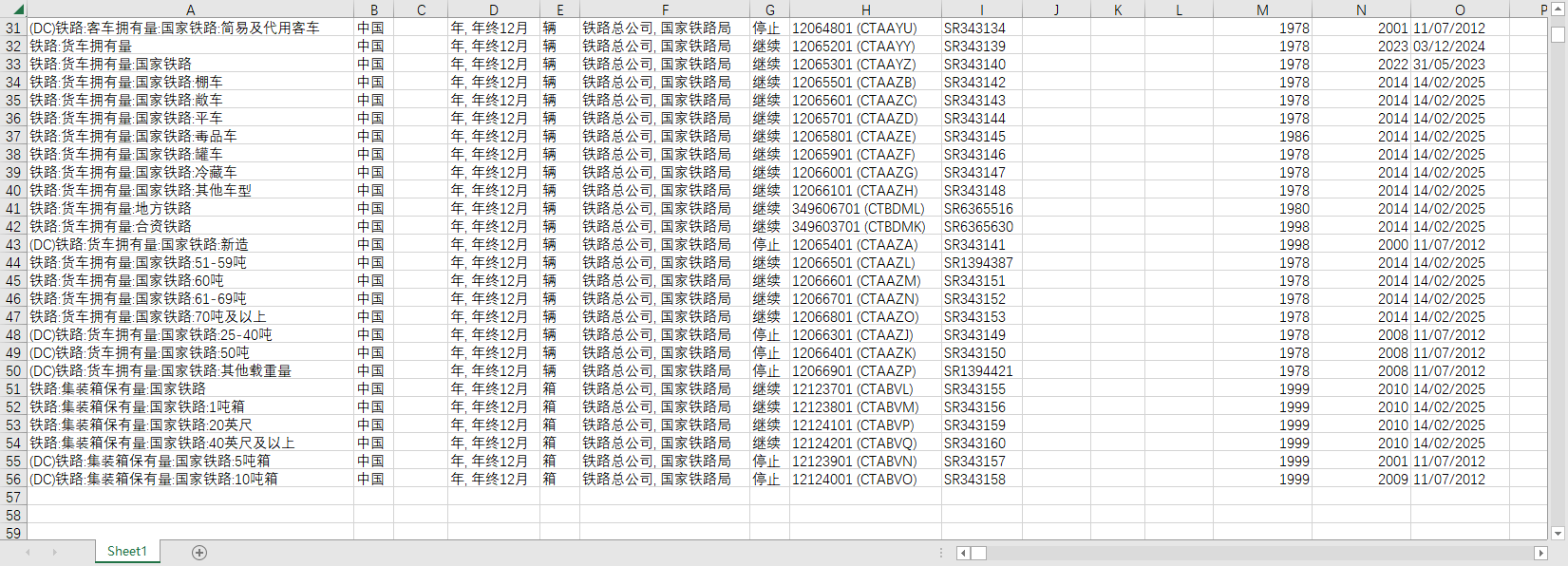 (DC)铁路:货车拥有量:国家铁路:25-40吨