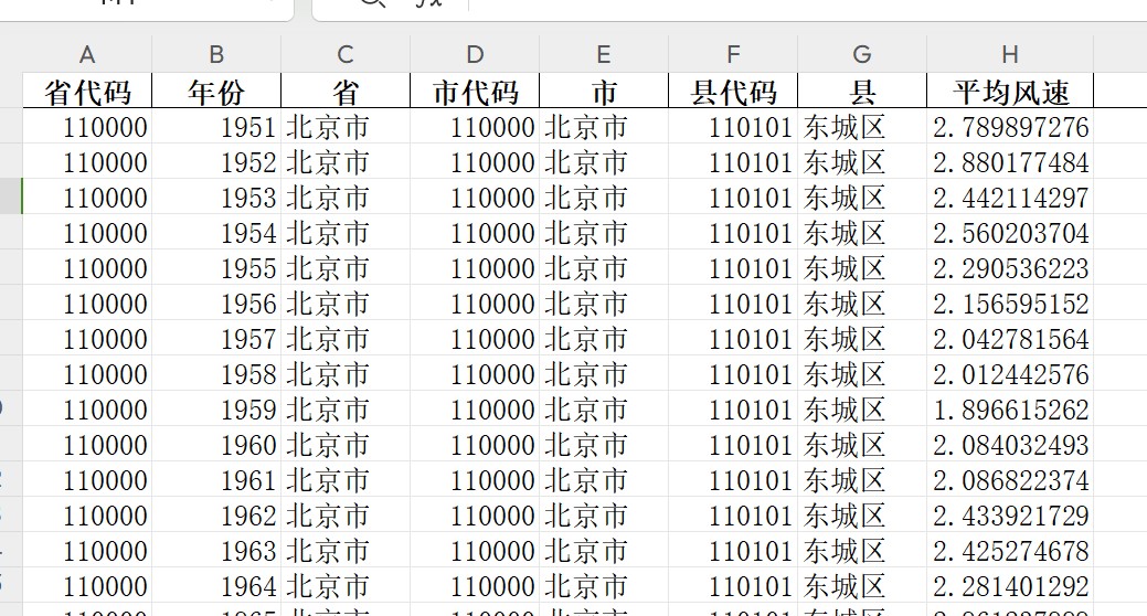 中国各区县平均风速年度数据1951~2024年.xlsx