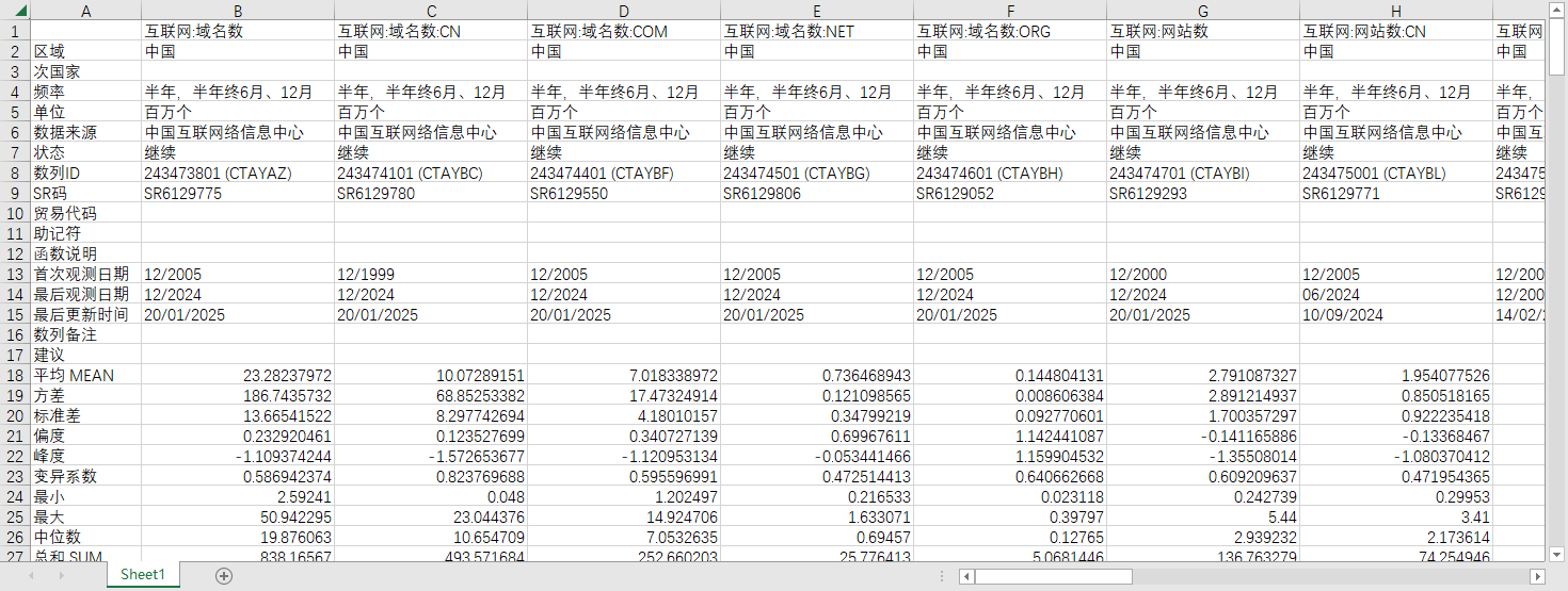互联网:域名数 互联网:域名数:CN 互联网:域名数:COM 互联网:域名数:NET 互联网:域名数:ORG 互联网:网站数 互联网:网站数:CN 互联网:网站数:COM 互联网:网站数:NET 互联网:网站数:ORG