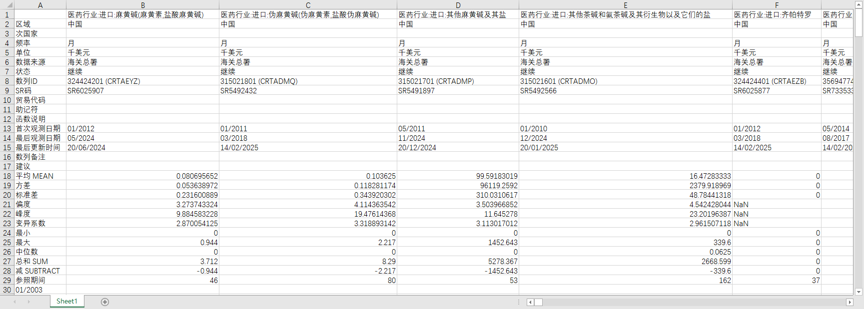进口:麻黄碱(麻黄素,盐酸麻黄碱) 进口:伪麻黄碱(伪麻黄素,盐酸伪麻黄碱) 进口:其他麻黄碱及其盐 进口:其他茶碱和氨茶碱及其衍生物以及它们的盐 进口:齐帕特罗 进口:硫酸伪麻黄碱 进口:芬乙茶碱(INN)及其盐 进口:硫酸钡 进口:联苯双脂 (DC)医药行业:进口:麻黄碱盐 (DC)医药行业:进口:D-去甲假麻黄碱(INN)及其盐 出口:麻黄碱(麻黄素,盐酸麻黄碱) 出口:伪麻黄碱(伪麻黄素,盐酸伪麻黄碱) 出口:其他麻黄碱及其盐 出口:其他茶碱和氨茶碱及其衍生物以及它们的盐 出口:齐帕特罗 出口:硫酸伪麻黄碱 出口:芬乙茶碱(INN)及其盐 出口:硫酸钡 出口:联苯双脂 (DC)医药行业:出口:麻黄碱盐 (DC)医药行业:出口:D-去甲假麻黄碱(INN)及其盐 进口:麻黄碱(麻黄素,盐酸麻黄碱) 进口:伪麻黄碱(伪麻黄素,盐酸伪麻黄碱) 进口:其他麻黄碱及其盐 进口:其他茶碱和氨茶碱及其衍生物以及它们的盐 进口:齐帕特罗 进口:硫酸伪麻黄碱 进口:芬乙茶碱(INN)及其盐 进口:硫酸钡 进口:联苯双脂 (DC)医药行业:进口:麻黄碱盐 (DC)医药行业:进口:D-去甲假麻黄碱(INN)及其盐 出口:麻黄碱(麻黄素,盐酸麻黄碱) 出口:伪麻黄碱(伪麻黄素,盐酸伪麻黄碱) 出口:其他麻黄碱及其盐 出口:其他茶碱和氨茶碱及其衍生物以及它们的盐 出口:齐帕特罗 出口:硫酸伪麻黄碱 出口:芬乙茶碱(INN)及其盐 出口:硫酸钡 出口:联苯双脂 (DC)医药行业:出口:麻黄碱盐 (DC)医药行业:出口:D-去甲假麻黄碱(INN)及其盐