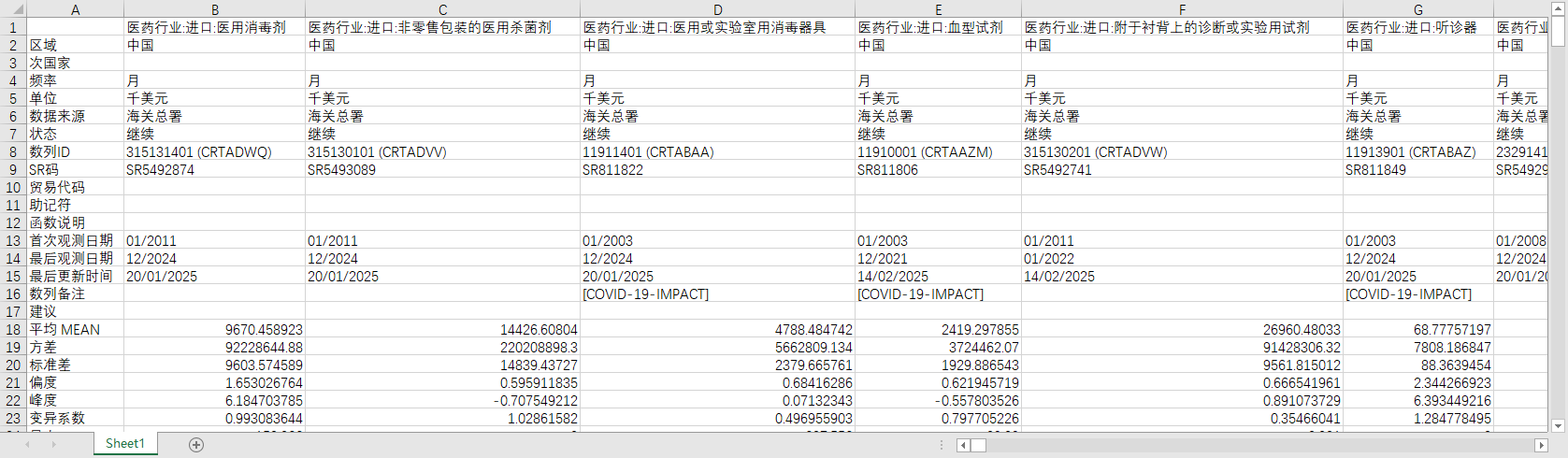 医药行业:进口:医用消毒剂 医药行业:进口:非零售包装的医用杀菌剂 医药行业:进口:医用或实验室用消毒器具 医药行业:进口:血型试剂 医药行业:进口:附于衬背上的诊断或实验用试剂 医药行业:进口:听诊器 医药行业:进口:液体温度计,可直接读数 医药行业:进口:血压测量仪器及器具 医药行业:进口:内窥镜 医药行业:进口:听力计 医药行业:进口:其他听力诊断装置 医药行业:进口:心电图记录仪 医药行业:进口:B型超声波诊断仪 医药行业:进口:彩色超声波诊断仪 医药行业:进口:未列名超声波扫描装置 医药行业:进口:X光检查造影剂;用于病人的诊断试剂 医药行业:进口:X射线断层检查仪 医药行业:进口:X射线管 医药行业:进口:X射线影像增强器 医药行业:进口:其他医疗或兽医用X射线应用设备 医药行业:进口:医疗、外科、牙科或兽用α射线、β射线、γ射线的应用设备(包括射线照相或射线治疗设备) 医药行业:进口:紫外线及红外线装置 医药行业:进口:红外线人体测温仪 医药行业:进口:使用光学射线(紫外线、可见光、红外线)的分光仪、分光光度计及摄谱仪 医药行业:进口:使用光学射线(紫外线、可见光、红外线)的其他仪器及装置 医药行业:进口:闪烁摄影装置 医药行业:进口:成套的核磁共振成像装置 医药行业:进口:核磁共振成像装置零件、附件 医药行业:进口:未列名电气诊断装置 医药行业:进口:病员监护仪 医药行业:进口:眼科用其他仪器及器具 医药行业:进口:助听器,不包括零件、附件 医药行业:进口:立体显微镜 医药行业:进口:复式光学显微镜的零件、附件 医药行业:进口:显微镜,但光学显微镜除外;衍射设备 医药行业:进口:显微镜,但光学显微镜除外;衍射设备零件、附件 医药行业:进口:(臭氧、氧气、喷雾)治疗器、人工呼吸器等 医药行业:进口:心脏起搏器,不包括零件、附件 医药行业:进口:麻醉设备 医药行业:进口:输血设备 医药行业:进口:透热疗法设备 医药行业:进口:肾脏透析设备(人工肾) 医药行业:进口:宫内节育器 医药行业:进口:人造关节 医药行业:进口:其他人造的人体部分 医药行业:进口:可确定用于造口术的用具 医药行业:进口:制成的微生物培养基 医药行业:进口:熔融石英等熔融硅石制实验室、医用玻璃器皿 医药行业:进口:温度0℃至300℃时线膨胀系数不超过5X10-6 /开尔文的其他制实验室、卫生及配药用玻璃器 医药行业:进口:其他实验室、卫生及配药用玻璃器皿 医药行业:进口:医用直线加速器 医药行业:进口:编号9022所列其他设备及零件(包括高压发生器、控制板及控制台、荧光屏等) 医药行业:进口:其他医疗、外科或兽医用仪器及器具 医药行业:进口:铝制卫生器具及其零件 医药行业:进口:铜制卫生器具及其零件 医药行业:进口:不锈钢制洗涤槽及脸盆的卫生器具 医药行业:进口:铸铁制,不论是否搪瓷的浴缸 医药行业:进口:其他钢铁制的浴缸 医药行业:进口:其他钢铁制卫生器具,包括零件 医药行业:进口:其他医疗、外科、牙科或兽医用家具(例如手术台、检查台、带机械装置的病床、牙科用椅) 医药行业:进口:机动医疗车 医药行业:进口:其他呼吸器具及防毒面具(但不包括既无机械零件又无可互换过滤器的防护面具) (DC)医药行业:进口:核磁共振成像装置 (DC)医药行业:进口:未列名复式光学显微镜 医药行业:出口:医用消毒剂 医药行业:出口:非零售包装的医用杀菌剂 医药行业:出口:医用或实验室用消毒器具 医药行业:出口:血型试剂 医药行业:出口:附于衬背上的诊断或实验用试剂 医药行业:出口:听诊器 医药行业:出口:液体温度计,可直接读数 医药行业:出口:血压测量仪器及器具 医药行业:出口:内窥镜 医药行业:出口:听力计 医药行业:出口:其他听力诊断装置 医药行业:出口:心电图记录仪 医药行业:出口:B型超声波诊断仪 医药行业:出口:彩色超声波诊断仪 医药行业:出口:未列名超声波扫描装置 医药行业:出口:X光检查造影剂;用于病人的诊断试剂 医药行业:出口:X射线断层检查仪 医药行业:出口:X射线管 医药行业:出口:X射线影像增强器 医药行业:出口:其他医疗或兽医用X射线应用设备 医药行业:出口:医疗、外科、牙科或兽用α射线、β射线、γ射线的应用设备(包括射线照相或射线治疗设备) 医药行业:出口:紫外线及红外线装置 医药行业:出口:红外线人体测温仪 医药行业:出口:使用光学射线(紫外线、可见光、红外线)的分光仪、分光光度计及摄谱仪 医药行业:出口:使用光学射线(紫外线、可见光、红外线)的其他仪器及装置 医药行业:出口:闪烁摄影装置 医药行业:出口:成套的核磁共振成像装置 医药行业:出口:核磁共振成像装置零件、附件 医药行业:出口:未列名电气诊断装置 医药行业:出口:病员监护仪 医药行业:出口:眼科用其他仪器及器具 医药行业:出口:助听器,不包括零件、附件 医药行业:出口:立体显微镜 医药行业:出口:复式光学显微镜的零件、附件 医药行业:出口:显微镜,但光学显微镜除外;衍射设备 医药行业:出口:显微镜,但光学显微镜除外;衍射设备零件、附件 医药行业:出口:(臭氧、氧气、喷雾)治疗器、人工呼吸器等 医药行业:出口:心脏起搏器,不包括零件、附件 医药行业:出口:麻醉设备 医药行业:出口:输血设备 医药行业:出口:透热疗法设备 医药行业:出口:肾脏透析设备(人工肾) 医药行业:出口:宫内节育器 医药行业:出口:人造