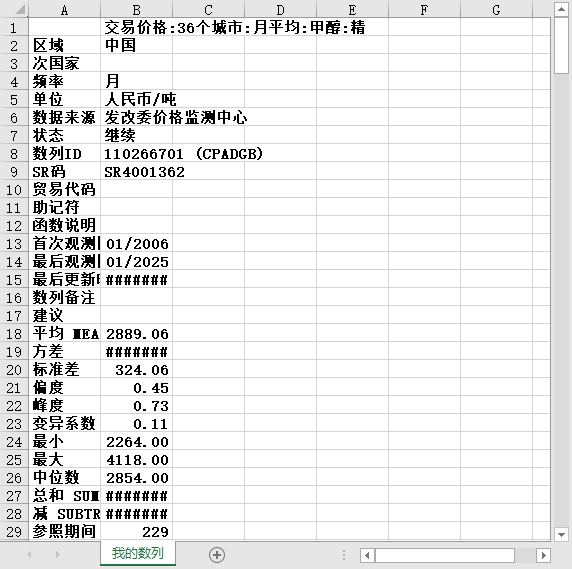 中国全国能源价格甲醇价格2006-202501月度交易价格36个城市月平均甲醇精