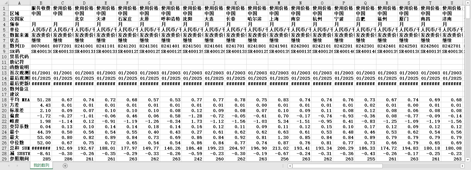 中国全国能源价格用电价格各省份36个省会城市中心城市2003-202501月度工业用月平均电力