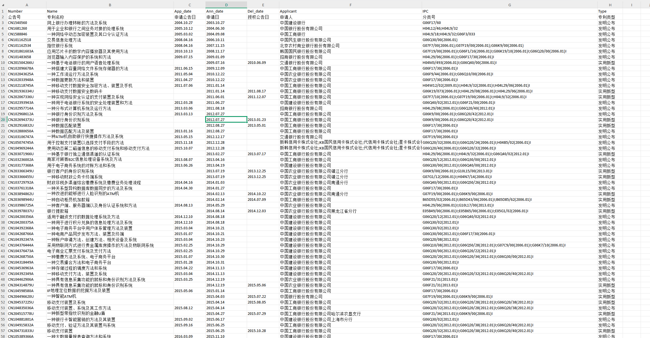 首先从 数据库平台专利数据库提取各年份以银行作为申请人的专利申请信息;