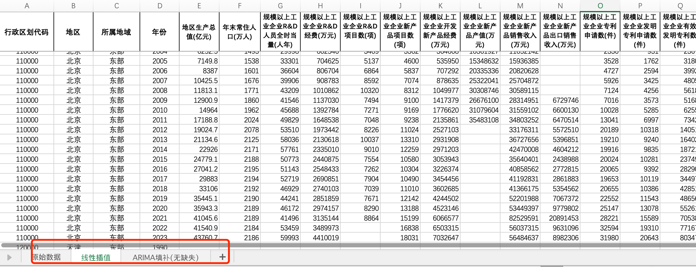 数据整理:Excel面板数据含原始数据(由于多年度指标不同存在缺失值)、线性插值、回归填补(无缺失)三个版本,提供您参考使用。其中,回归填补无缺失值,以保证面板数据的平衡性。