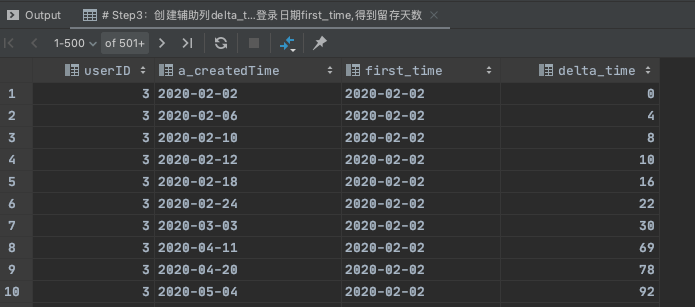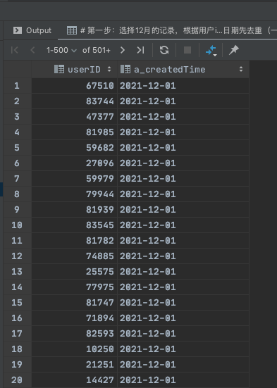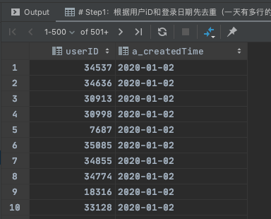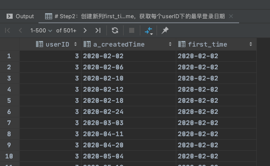 group by userId,date(from_unixtime(createdTime)) # 知识点2:根据userId,a_createdTime 去重
