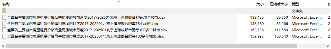 全国各主要城市房屋租赁价格写字楼商业营业用房廉租房公共租赁房城市月度2017-202501北京上海成都合肥等100多个城市