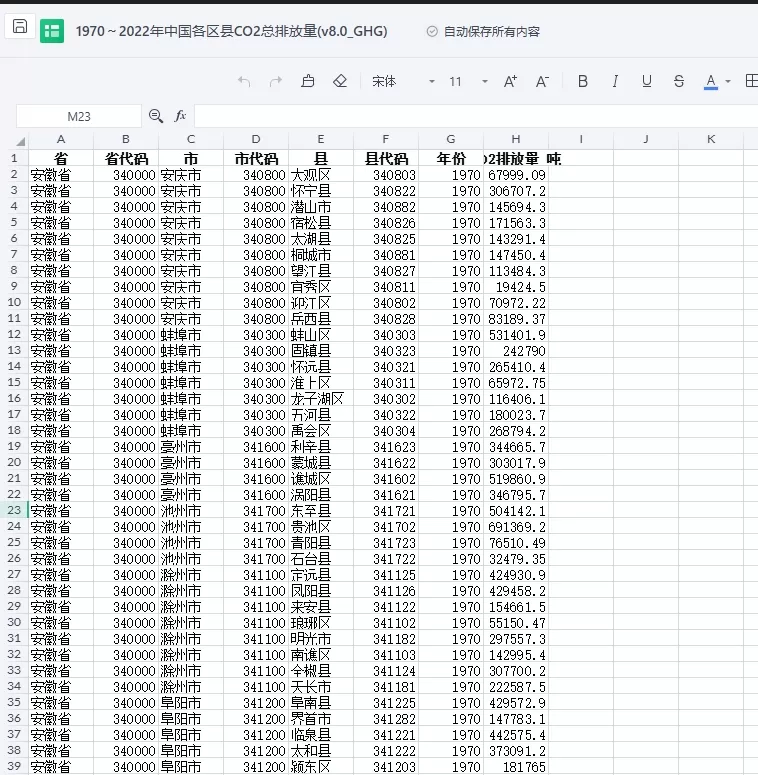 1、数据源名称:1970-2022年 中国CO2排放数据 (省、市、区县、乡镇)