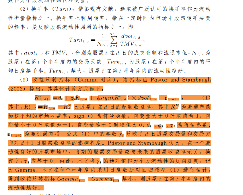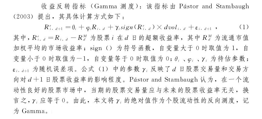 在每个年度内采用日度数据对回归模型(1)进行估计,得到收益反转指标Gamma,Gamma越小,则股票在年度内的流动性越好。