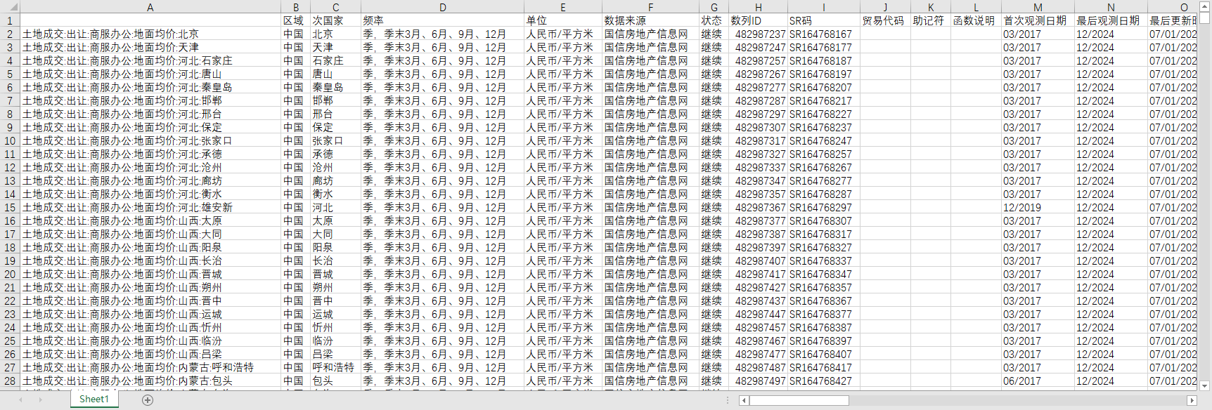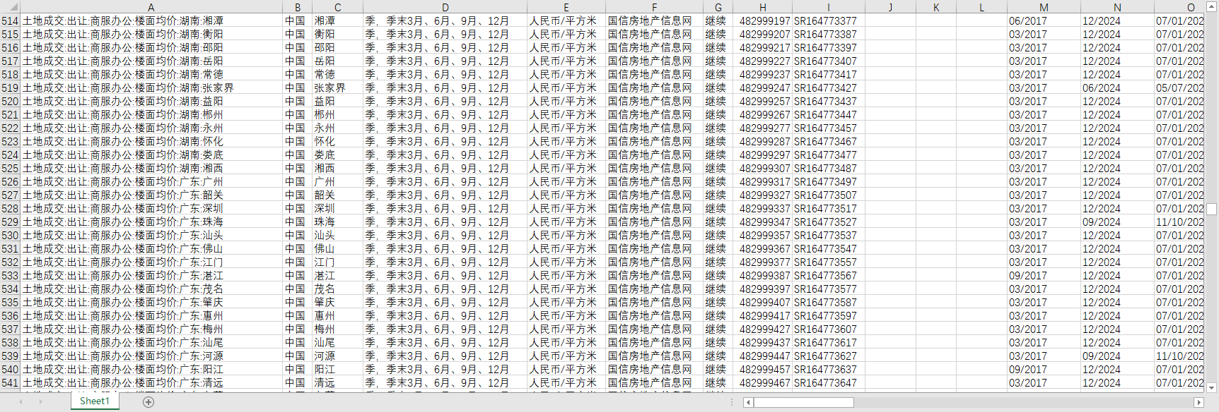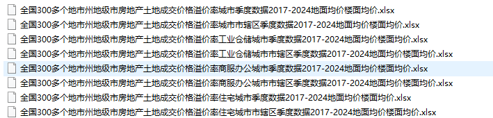 全国300多个地市州地级市房地产土地成交价格溢价率住宅商服办公工业仓储城市市辖区季度数据2017-2024地面均价楼面均价