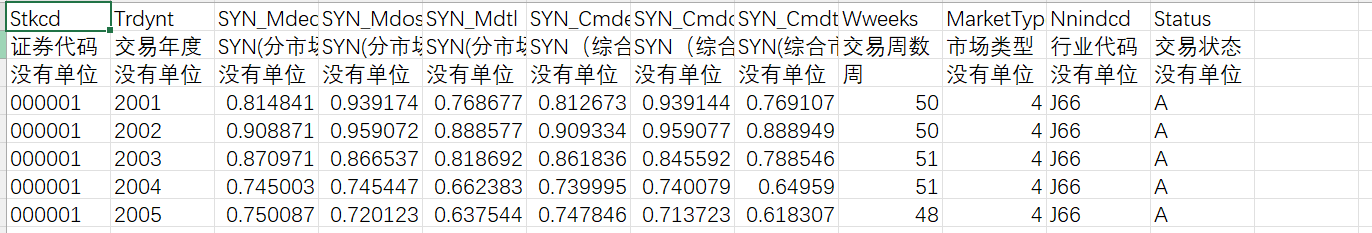 2001-2024年度股价同步性指标