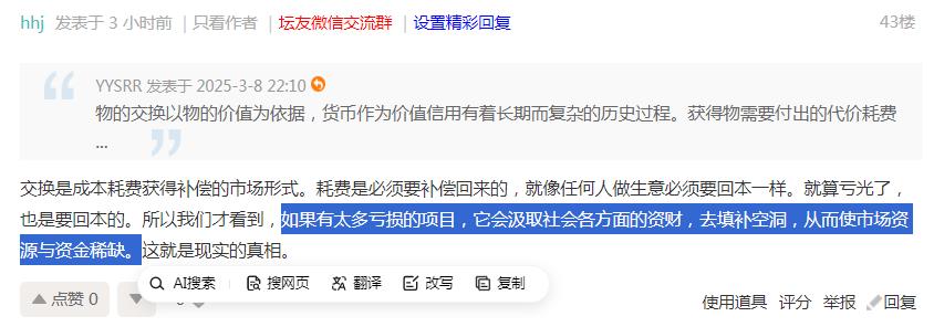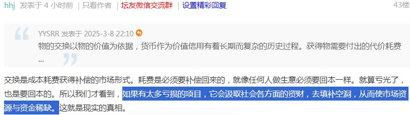 YYSRR 发表于 2025-3-8 22:10 物的交换以物的价值为依据,货币作为价值信用有着长期而复杂的历史过程。获得物需要付出的代价耗费 ...