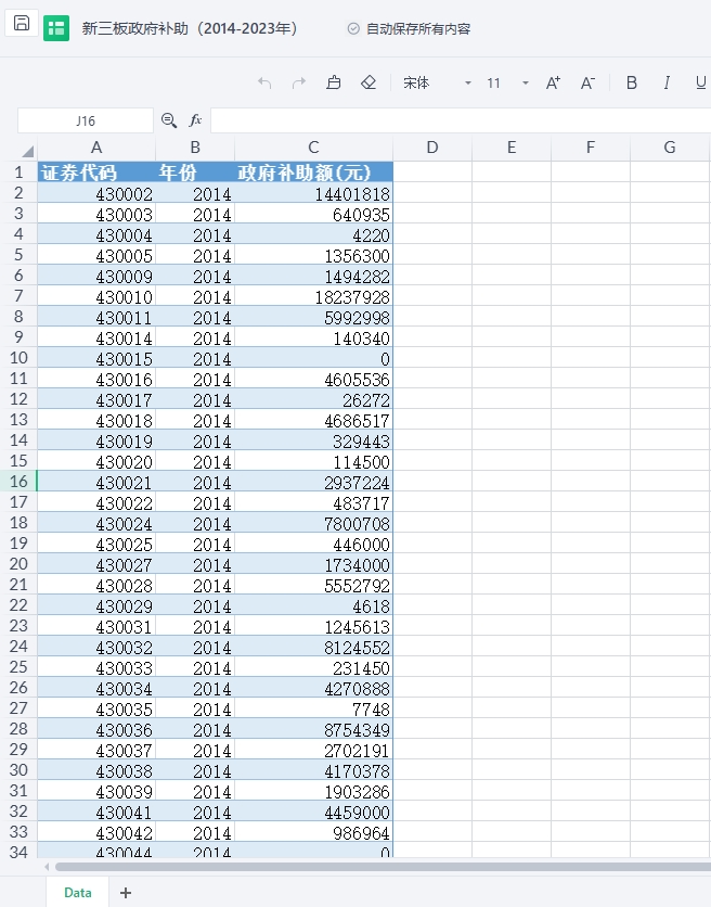 数据说明:包括新三板基本信息、研究数据、政府补助数据