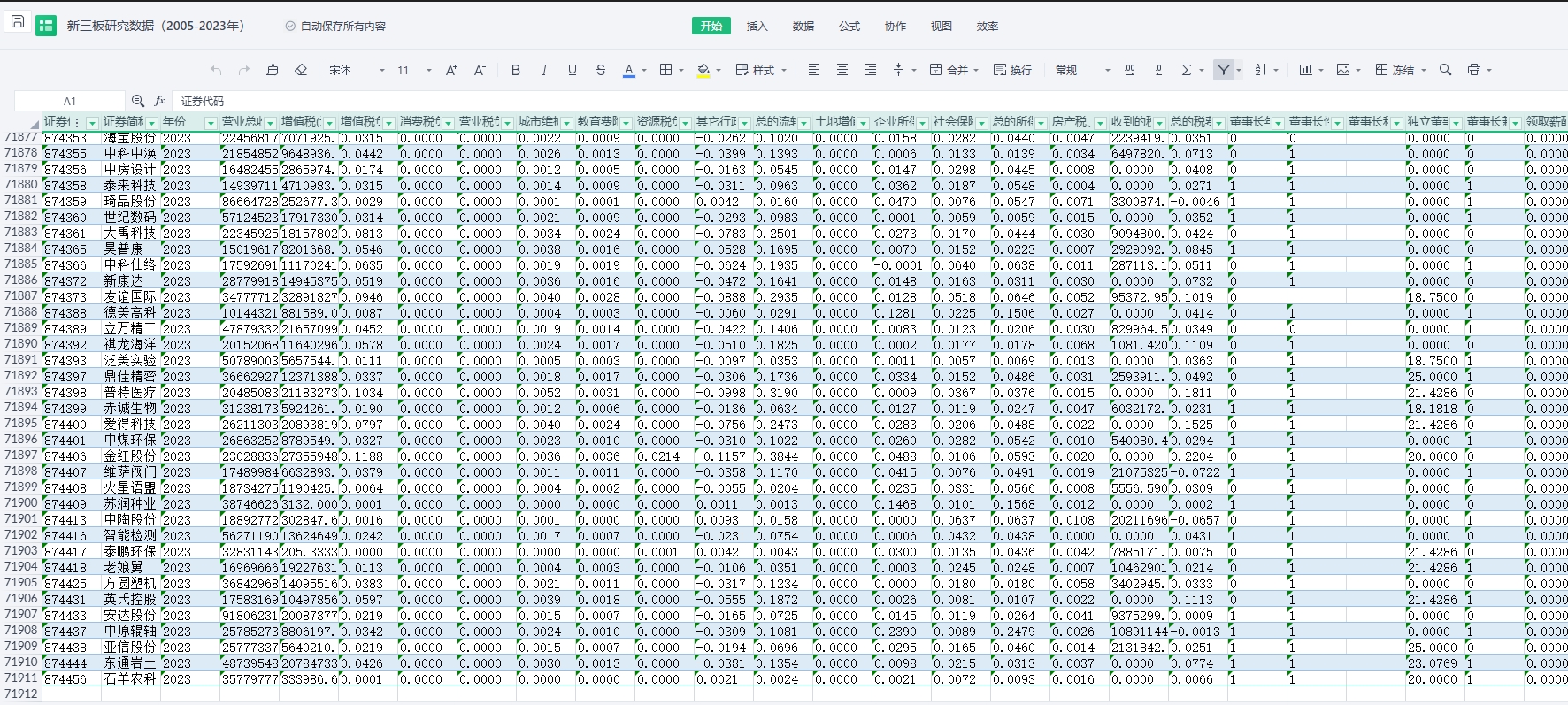 总的税费负担率合计 | 董事长年龄1 | 董事长性别1 | 董事长和总经理(总裁、CEO)的社会关系 | 独立董事比例(%) |