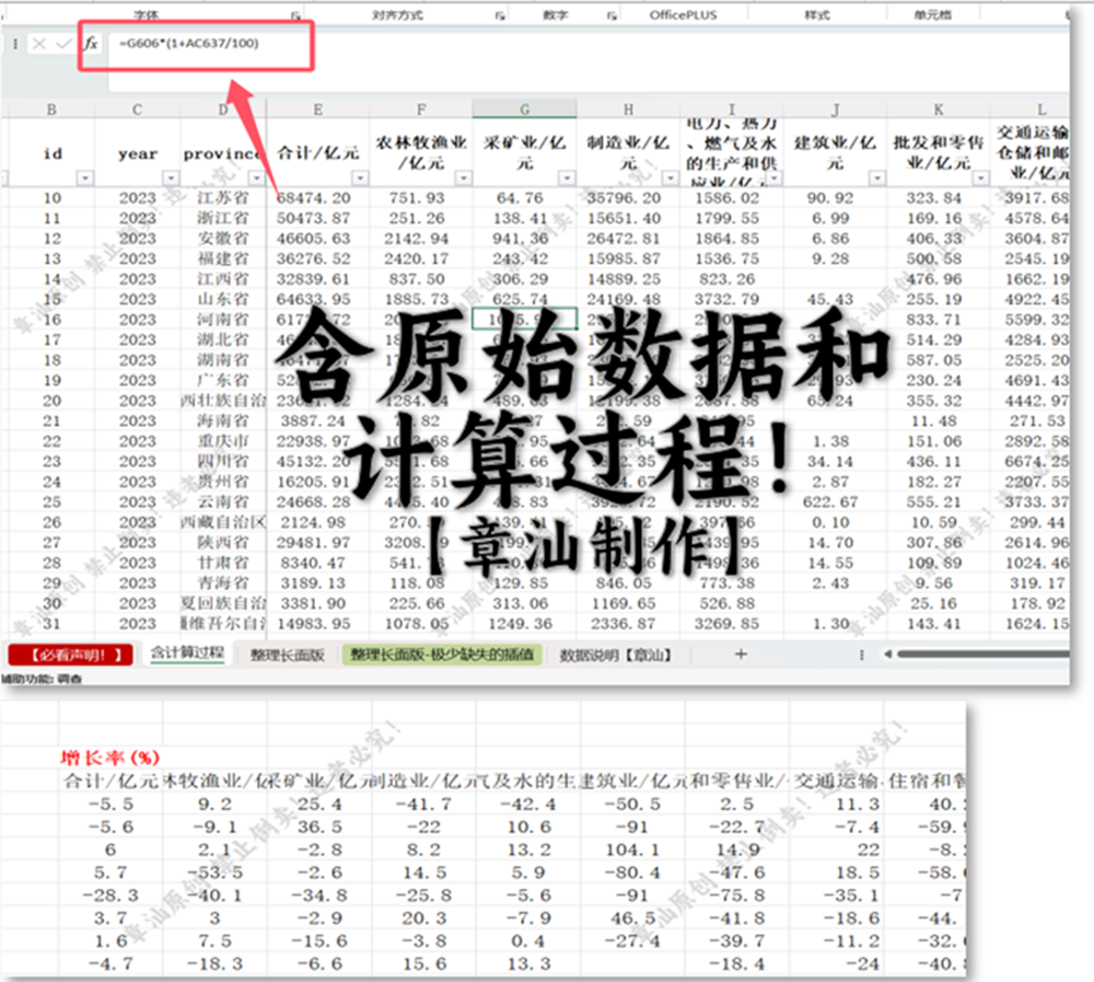 7.特殊说明:17年及之前是“全社会口径”,但18年及之后增长率实际公布的是“不含农户”,所以这样计算有瑕疵,不过是唯一办法【目前论文里都是这样用的】,因为分行业的不公布“含农户”增长率或“农户分行业增长率”,因此无法计算真实值,只能算是“估算”。