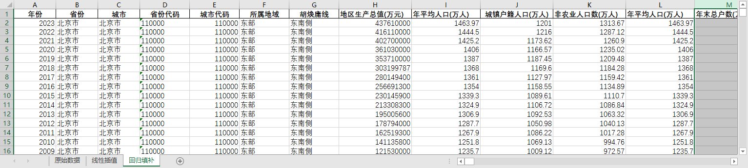 ARIMA回归填补。基于ARIMA模型,利用同一地区的时间序列数据,对缺失值进行预测填补。