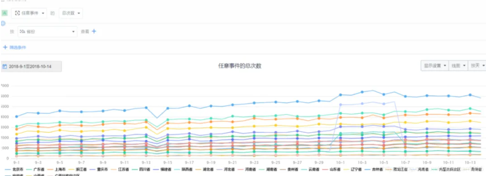 确定原因:那是不是哪个省份出了问题呢?下面我们按省份进行查看,由下图可以看出,这次数据的猛跌是全国范围内的,基本上所有的省份都有下迭,这样就排除了某个区域下跌的原因。