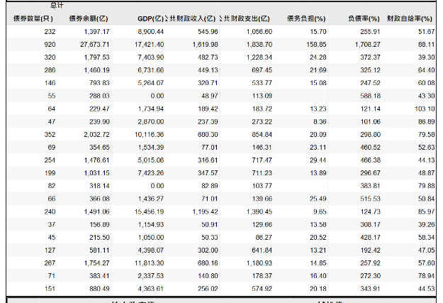 - 债券余额(亿元):截至某个时间点,未偿还的债券金额。